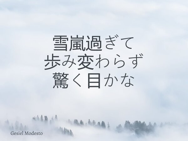 雪嵐過ぎて 歩み変わらず 驚く目かな