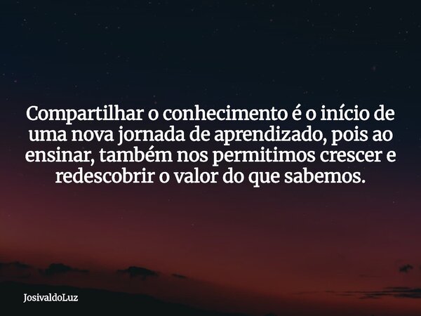 Compartilhar o conhecimento é o início de uma nova jornada de aprendizado, pois ao ensinar, também nos permitimos crescer e redescobrir o valor do que sabemos.