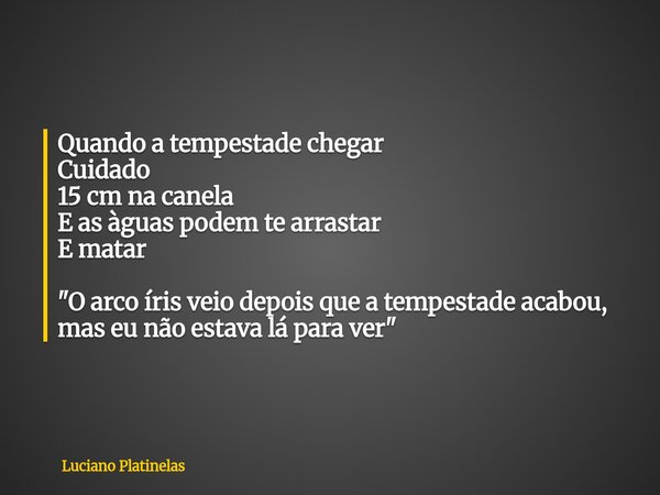 Quando a tempestade chegar Cuidado 15 cm na canela E as àguas podem te arrastar E matar "O arco íris veio depois que a tempestade acabou, mas eu não estava lá para ver"