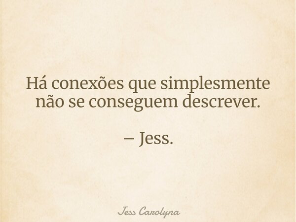 Há conexões quesimplesmente não se conseguem descrever. – Jess.