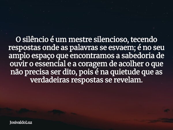 O silêncio é um mestre silencioso,... JosivaldoLuz
