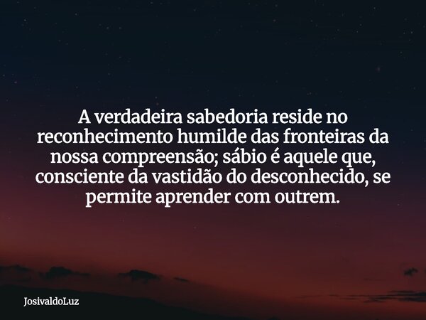 A verdadeira sabedoria reside no reconhecimento humilde das fronteiras da nossa compreensão; sábio é aquele que, consciente da vastidão do desconhecido, se permite aprender com outrem.