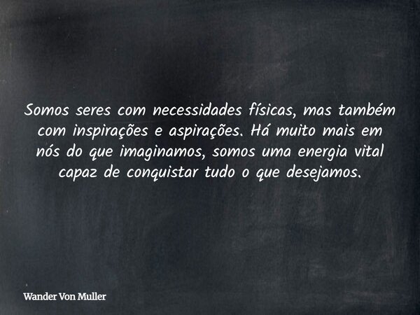 Somos seres com necessidades físicas, mas também com inspirações e aspirações. Há muito mais em nós do que imaginamos, somos uma energia vital capaz de conquistar tudo o que desejamos.