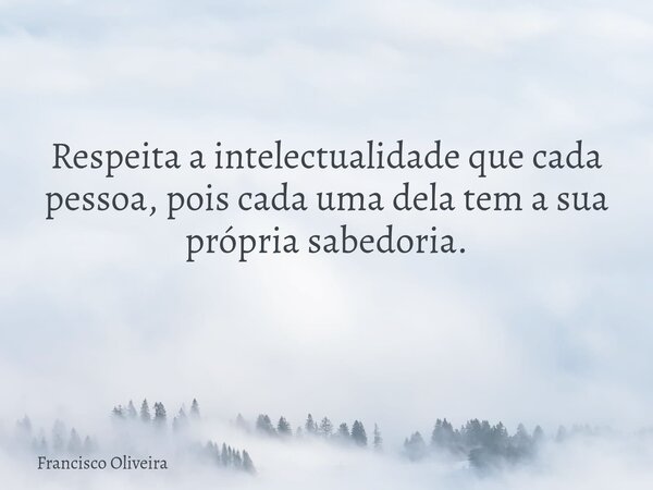 Respeita a intelectualidade que cada pessoa, pois cada uma dela tem a sua própria sabedoria.
