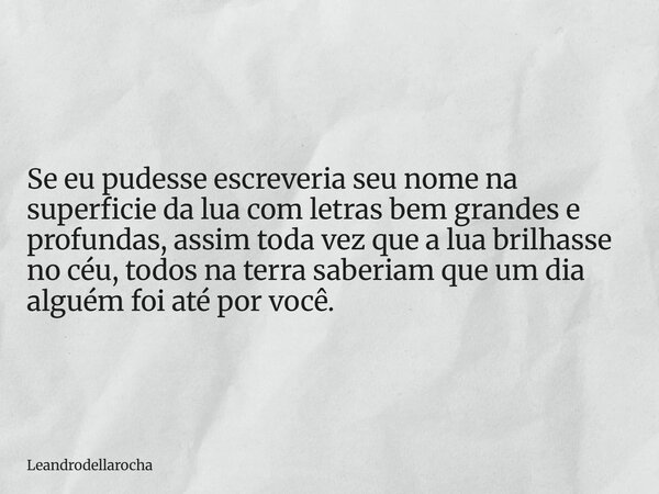 Se eu pudesse escreveria seu nome na superficie da lua com letras bem grandes e profundas, assim toda vez que a lua brilhasse no céu, todos na terra saberiam que um dia alguém foi até por você.