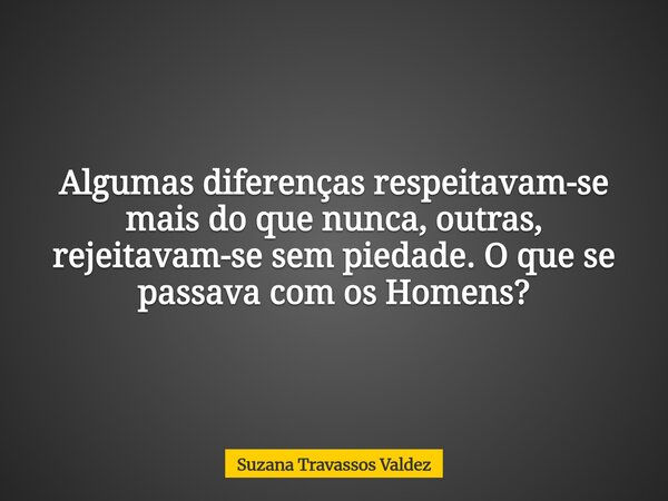 Algumas diferenças respeitavam-se mais do que nunca, outras, rejeitavam-se sem piedade. O que se passava com os Homens?