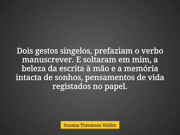 Dois gestos singelos, prefaziam o verbo manuscrever. E soltaram em mim, a beleza da escrita à mão e a memória intacta de sonhos, pensamentos de vida registados no papel.