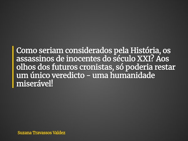 Como seriam considerados pela História, os assassinos de inocentes do século XXI? Aos olhos dos futuros cronistas, só poderia restar um único veredicto - uma humanidade miserável!