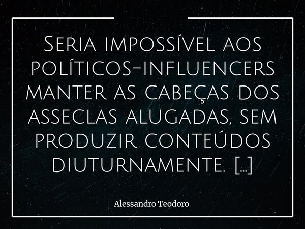 Seria impossível aos políticos-influencers manter as cabeças dos asseclas alugadas, sem produzir conteúdos diuturnamente.
