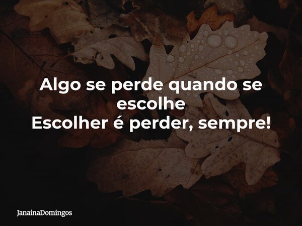 Algo se perde quando se escolhe Escolher é perder, sempre!