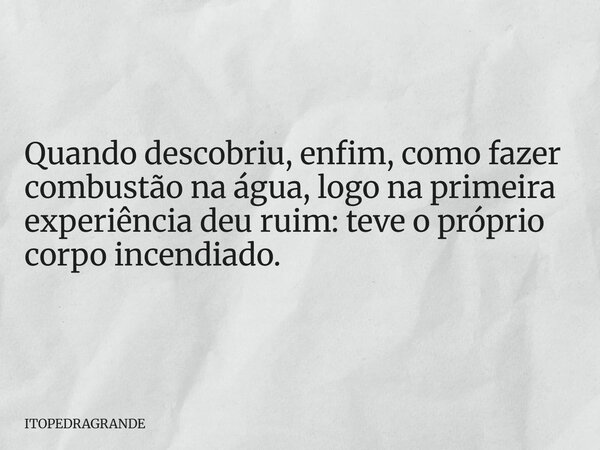 Quando descobriu, enfim, como fazer combustão na água, logo na primeira experiência deu ruim: teve o próprio corpo incendiado.