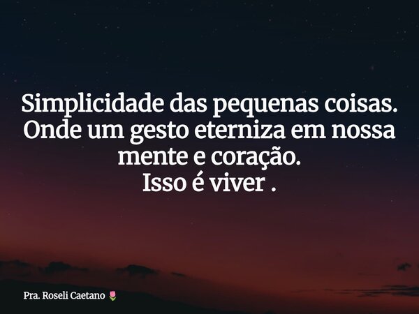 Simplicidade das pequenas coisas. Onde um gesto eterniza em nossa mente e coração. Isso é viver .