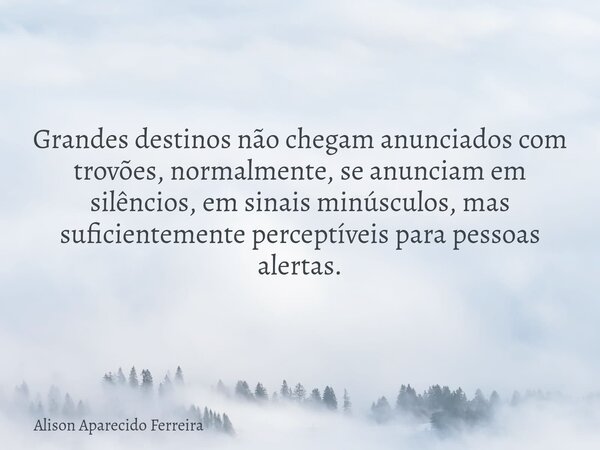 Grandes destinos não chegam anunciados com trovões, normalmente, se anunciam em silêncios, em sinais minúsculos, mas suficientemente perceptíveis para pessoas alertas.