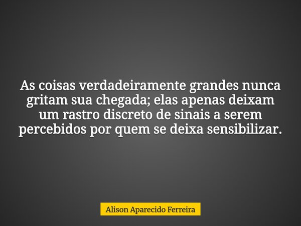 As coisas verdadeiramente grandes nunca gritam sua chegada; elas apenas deixam um rastro discreto de sinais a serem percebidos por quem se deixa sensibilizar.