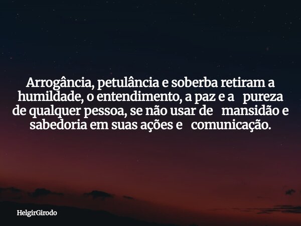 Arrogância, petulância e soberba retiram a humildade, o entendimento, a paz e a pureza de qualquer pessoa, se não usar de mansidão e sabedoria em suas ações e comunicação.