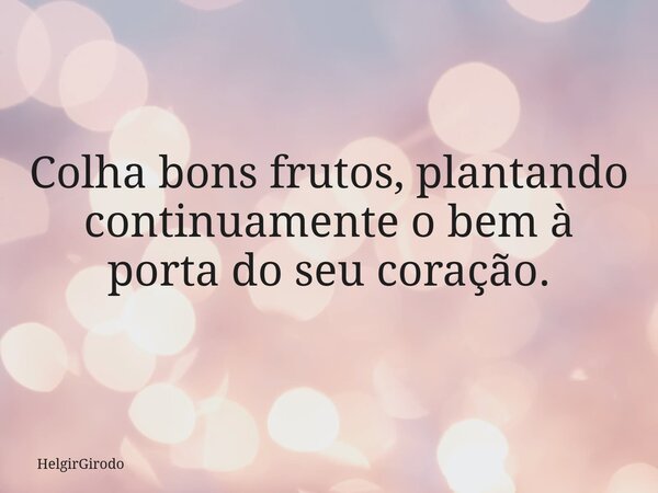 Colha bons frutos, plantando continuamente o bem à porta do seu coração.