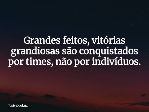 Grandes feitos, vitórias grandiosas são conquistados por times, não por indivíduos.