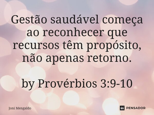 Gestão saudável começa ao reconhecer que recursos têm propósito, não apenas retorno. by Provérbios 3:9-10