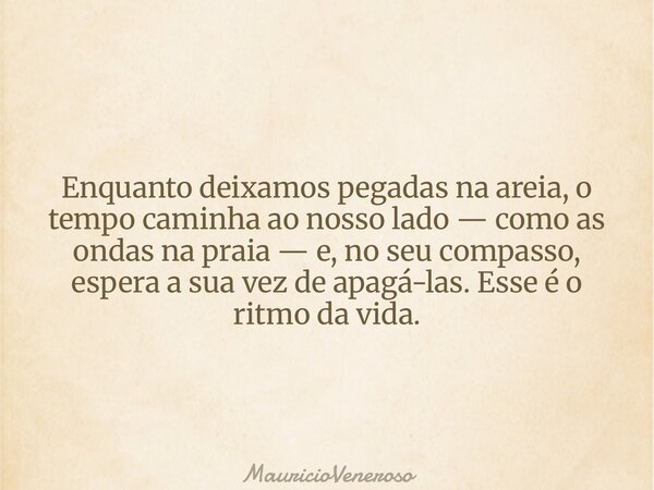 Enquanto deixamos pegadas na areia, o tempo caminha ao nosso lado — como as ondas na praia — e, no seu compasso, espera a sua vez de apagá-las. Esse é o ritmo da vida.