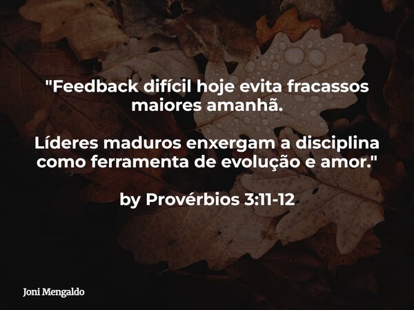 "Feedback difícil hoje evita fracassos maiores amanhã. Líderes maduros enxergam a disciplina como ferramenta de evolução e amor." by Provérbios 3:11-12