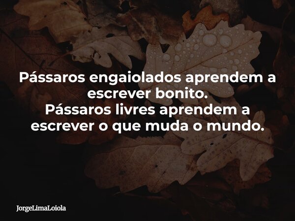 Pássaros engaiolados aprendem a escrever bonito. Pássaros livres aprendem a escrever o que muda o mundo.