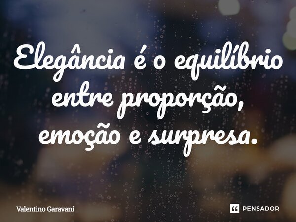 Elegância é o equilíbrio entre proporção, emoção e surpresa.