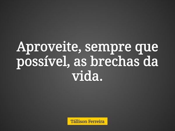 Aproveite, sempre que possível, as brechas da vida.