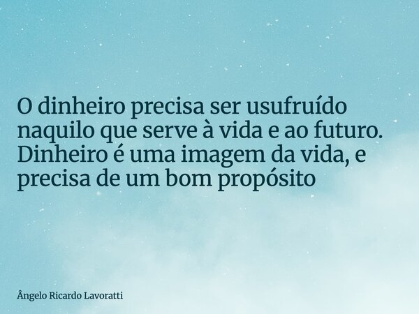 O dinheiro precisa ser usufruído naquilo que serve à vida e ao futuro. Dinheiro é uma imagem da vida, e precisa de um bom propósito