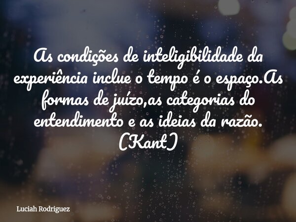 As condições de inteligibilidade da experiência inclue o tempo é o espaço.As formas de juízo,as categorias do entendimento e as ideias da razão. (Kant)