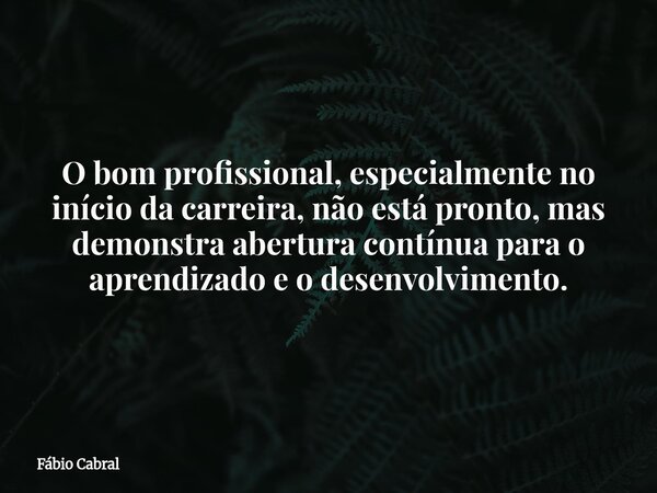 O bom profissional, especialmente no início da carreira, não está pronto, mas demonstra abertura contínua para o aprendizado e o desenvolvimento.