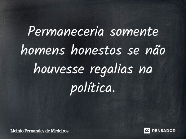 Permaneceriasomentehomens honestos se não houvesse regalias na política.