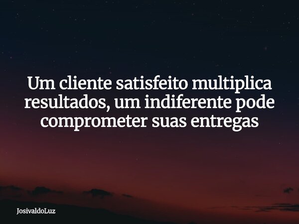 Um cliente satisfeito multiplica resultados, um indiferente pode comprometer suas entregas