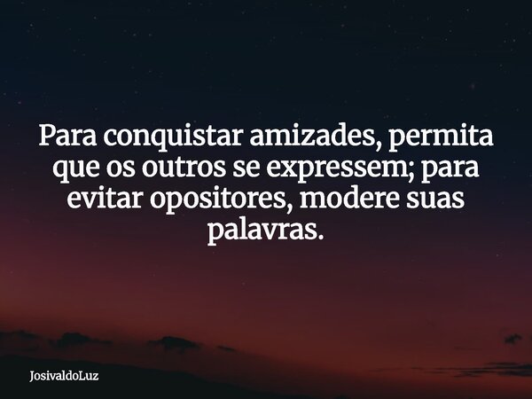Para conquistar amizades, permita que os outros se expressem; para evitar opositores, modere suas palavras.