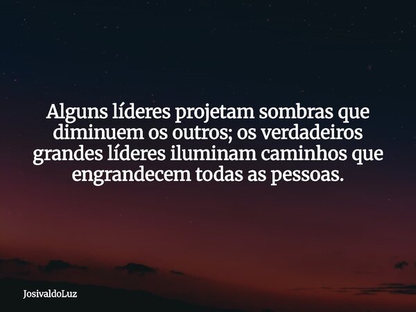 Alguns líderes projetam sombras que diminuem os outros; os verdadeiros grandes líderes iluminam caminhos que engrandecem todas as pessoas.