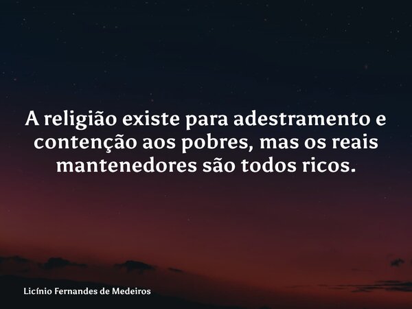 A religião existe para adestramento e contenção aos pobres, mas os reais mantenedores são todos ricos.