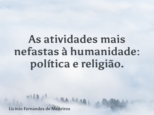 As atividades mais nefastas à humanidade: política e religião.