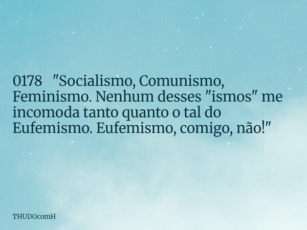0178 "Socialismo, Comunismo, Feminismo. Nenhum desses "ismos" me incomoda tanto quanto o tal do Eufemismo. Eufemismo, comigo, não!"