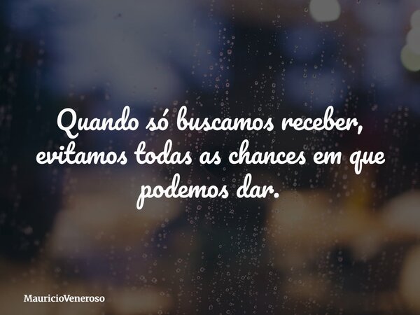 Quando só buscamos receber, evitamos todas as chances em que podemos dar.
