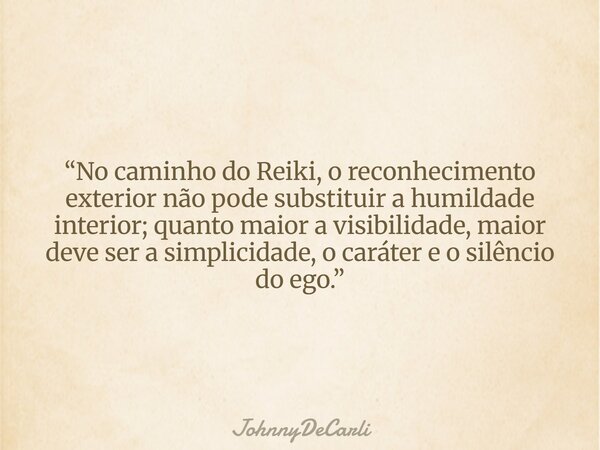 “No caminho do Reiki, o reconhecimento exterior não pode substituir a humildade interior; quanto maior a visibilidade, maior deve ser a simplicidade, o caráter e o silêncio do ego.”