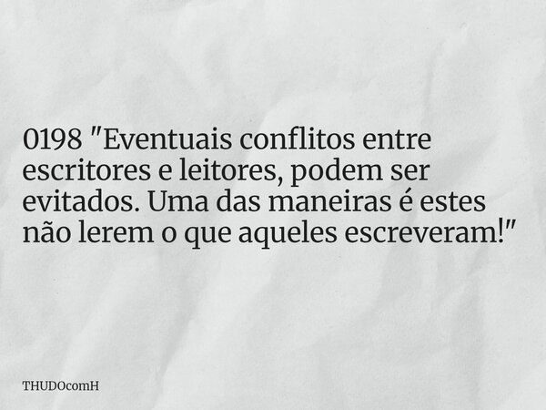 0198 "Eventuais conflitos entre escritores e leitores, podem ser evitados. Uma das maneiras é estes não lerem o que aqueles escreveram!"