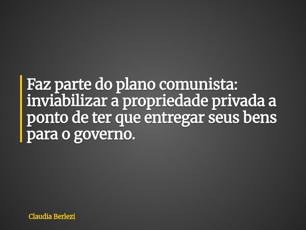 Faz parte do plano comunista: inviabilizar a propriedade privada a ponto de ter que entregar seus bens para o governo.