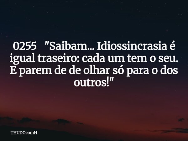0255 "Saibam... Idiossincrasia é igual traseiro: cada um tem o seu. E parem de de olhar só para o dos outros!"