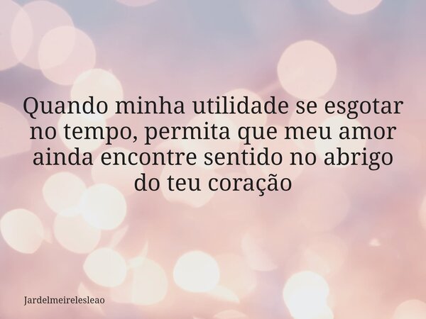 Quando minha utilidade se esgotar no tempo, permita que meu amor ainda encontre sentido no abrigo do teu coração