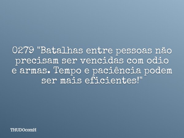 0279 "Batalhas entre pessoas não precisam ser vencidas com odio e armas. Tempo e paciência podem ser mais eficientes!"