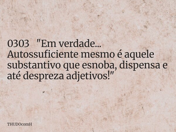 0303 "Em verdade... Autossuficiente mesmo é aquele substantivo que esnoba, dispensa e até despreza adjetivos!"