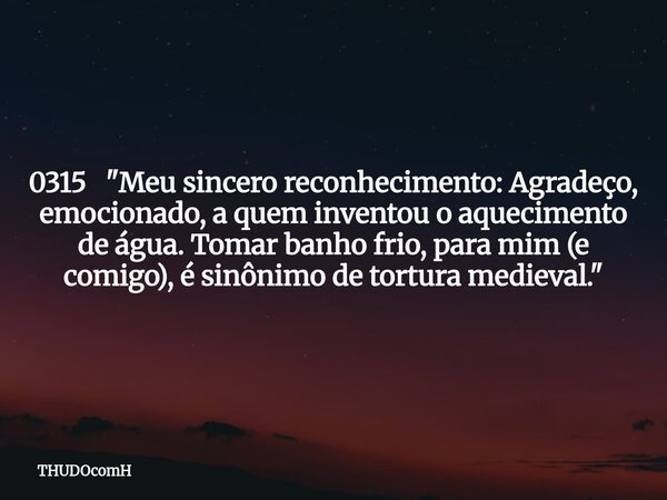 0315 "Meu sincero reconhecimento: Agradeço, emocionado, a quem inventou o aquecimento de água. Tomar banho frio, para mim (e comigo), é sinônimo de tortura medieval."