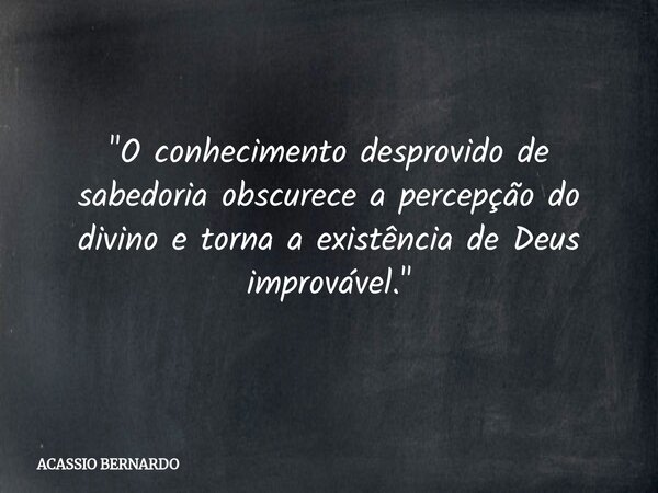 "O conhecimento desprovido de sabedoria obscurece a percepção do divino e torna a existência de Deus improvável."