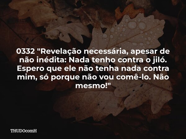 0332 "Revelação necessária, apesar de não inédita: Nada tenho contra o jiló. Espero que ele não tenha nada contra mim, só porque não vou comê-lo. Não mesmo!"