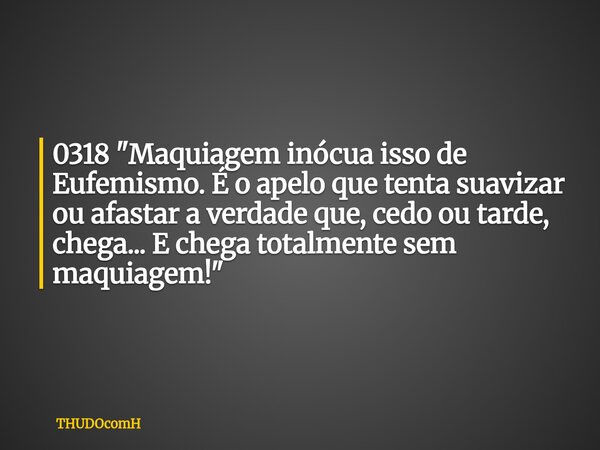 0318 "Maquiagem inócua isso de Eufemismo. É o apelo que tenta suavizar ou afastar a verdade que, cedo ou tarde, chega... E chega totalmente sem maquiagem!"