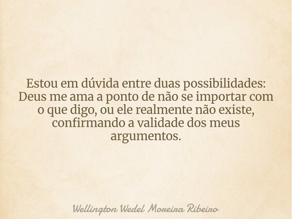 Estou em dúvida entre duas possibilidades: Deus me ama a ponto de não se importar com o que digo, ou ele realmente não existe, confirmando a validade dos meus argumentos.